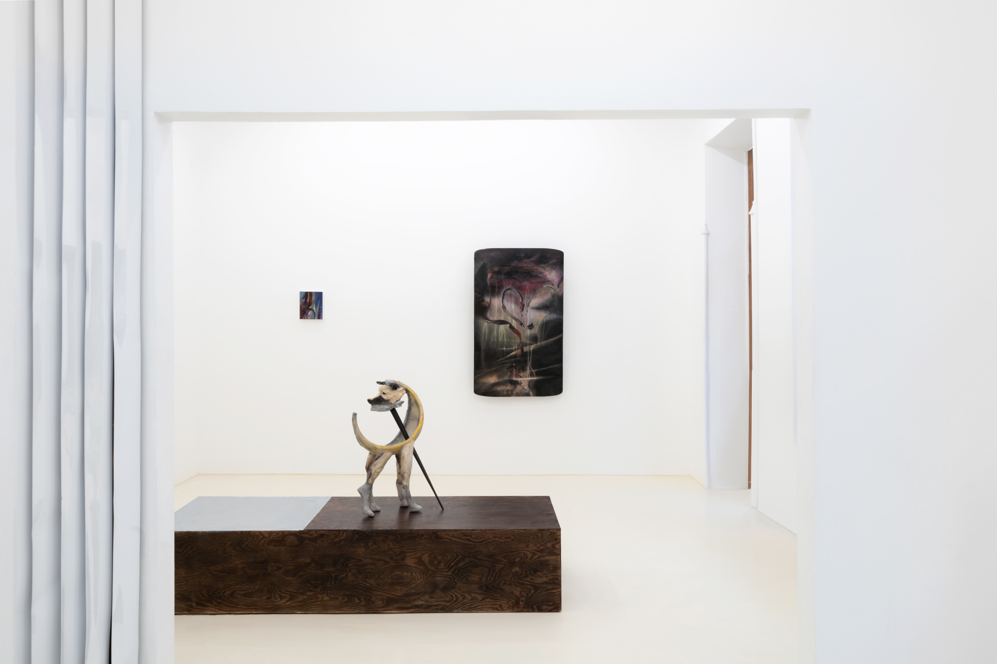 Coulisse Gallery presents The World Without Us, a duo exhibition of Uchercie and Isaac Lythgoe. The exhibition's title references the disquiet within both artists’ work and a movement past fantasy toward science fiction, which is the art of the possible or the history of ideas that will inevitably become real. [i] In this narrative, material, and color matter, as the industrial anodizes metallic skin, and the posthuman, the hybrids, and the hussies eagerly breed to endure. The artworks contain elements of the past and future, traces of fiction, and forecasts of absence.